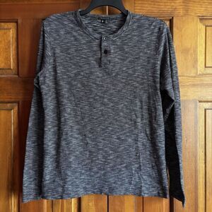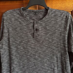 Theory Black White Striped Knit Stretch Long Sleeve Shirt Men's Size Large