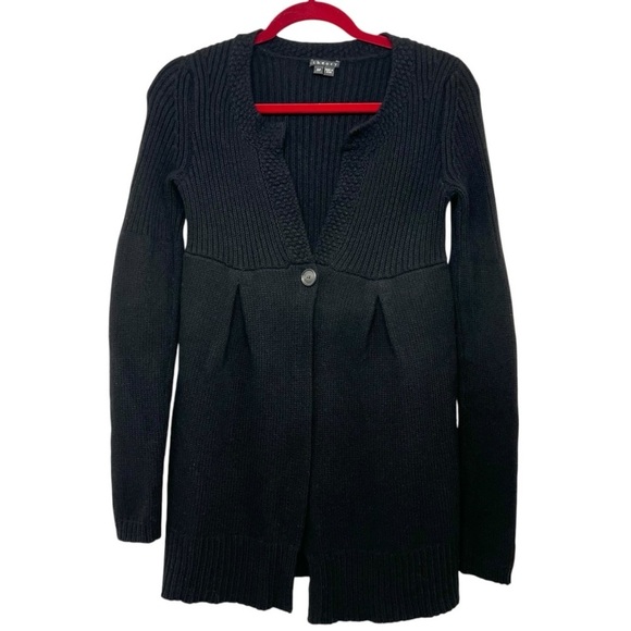 Theory Black Wool Cashmere One Button Longline Women's Cardigan Sweater Small