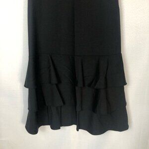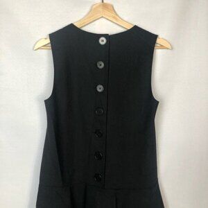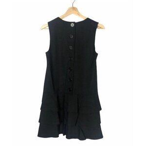 Theory Black Wool Drop Waist Selma Button Back Bottom Ruffle Dress
