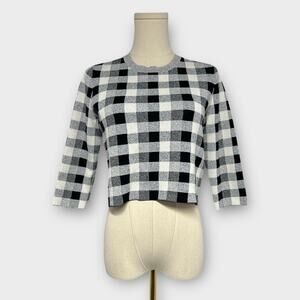 Theory Black and White Gingham Plaid Knit Top Size Small