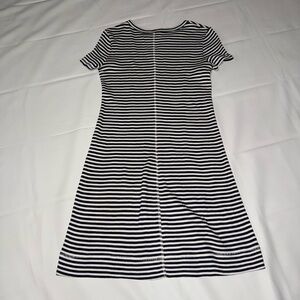 Elegant mini dress with classic black and white stripes. Perfect for casual outings.