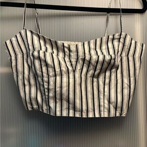 Chic Theory shirt with bold black and white stripes. Ideal for versatile styling.
