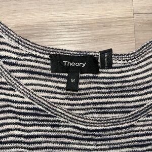 Theory Black and White Striped linen Maxi Dress
