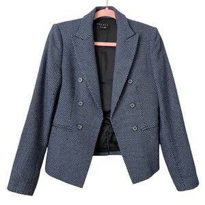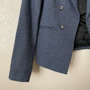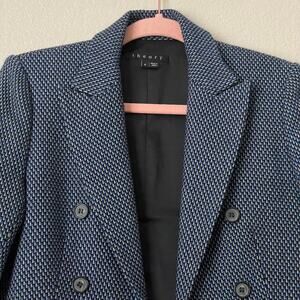 Theory Blazer Womens Size 6 Blue Black Open Front Double Breasted Preppy Career