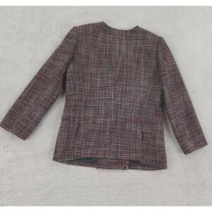 Theory Blazer Womens 8 Tweed Plaid Wool Red Navy White Fringe 3/4 Sleeve Career. Jacket is in excellent condition, no stains, tears, or signs of wear noted, please review all photos. See photos for measurements. Thanks for visiting!