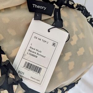 Theory Blouse Top Silk Blend Tie Neckline Gathered Waist Long Sleeve Black L NWT