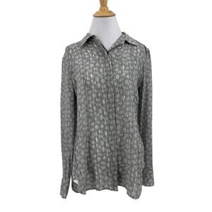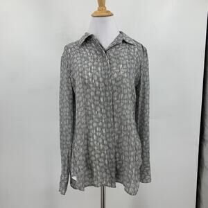 Theory Blouse Womens M Medium Multi Silk Hidden Button Collar 2 Pc Cami Set