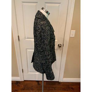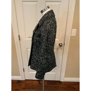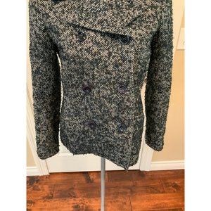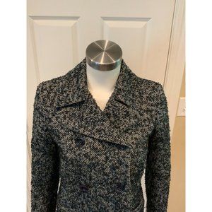 Theory Blue & Gray Tweed Wool Blend Double Breasted Coat, Size P