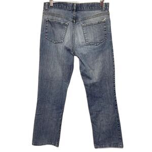 Theory Blue Medium Wash Mid-rise Distressed Ripped Straight Leg Jeans Size 32