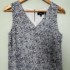 Theory Blue & White Floral 100% Silk Adlerdale SV Sleeveless Shift Dress Size 4