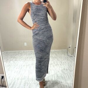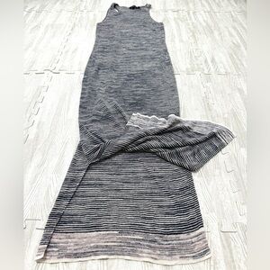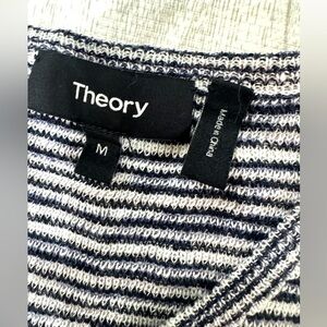 Super cute, striped, blue and white, knit linen blend, racer back tank, slits at bottom, Theory dress. Size medium. In excellent condition. Measurements and fabric description in photos