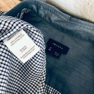 Women’s Theory blue checkered print long sleeve button down shirt in excellent like new condition. Size P, seems to fit similar to small. Measurements coming soon.