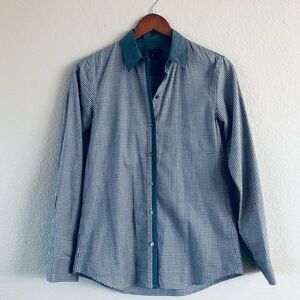 Theory Blue Checkered Button Down Shirt