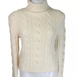 Item: Women's Vintage Y2K Cable Bobble Knit Turtleneck Sweater Ivory Alpaca Blend