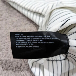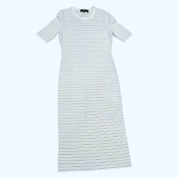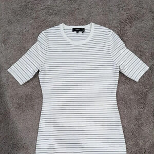 Theory Body Con Striped Ribbed Stretch Knit Midi Dress Ivory Black Small