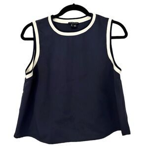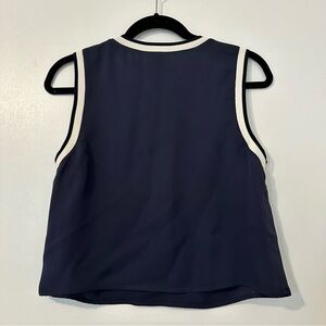 Theory Bonda Sleeveless Silk Crop Top Womens Small Navy White
