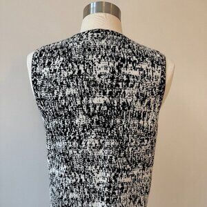 Cropped Theory top takes on the look of hazy tweed with two-tone stitches. Banded crew neckline. Sleeveless.