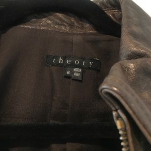 Theory brown leather zip up jacket, glossy leather finish. No noticeable wear.