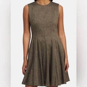 Theory Brown Woven Peplum Linen Blend Fit n Flare Sleeveless Dress Womens Sz 8
