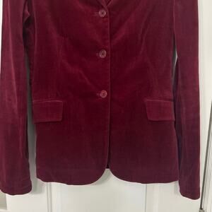 Theory Burgundy Merlot Velvet 3 Button Fitted Blazer Large