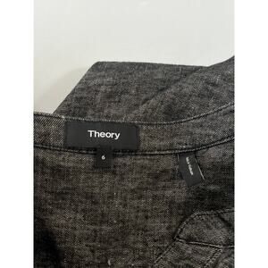 Theory Button Down Linen Blend Slit Midi Dress Womens Size 6 Gray Front Pockets