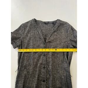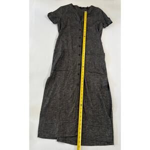 Theory Button Down Linen Blend Slit Midi Dress Womens 6 Gray Lagenlook Minimal