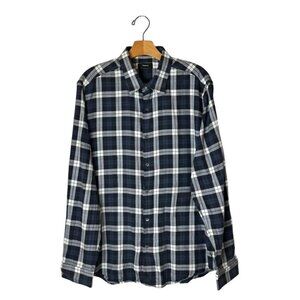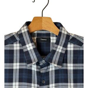 Theory Button Down Shirt Mens XL Navy Blue Rammy Check Oxford Plaid Long Sleeve
