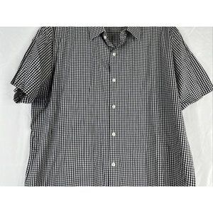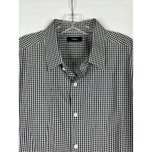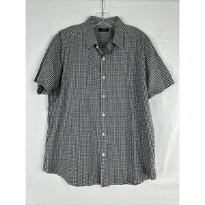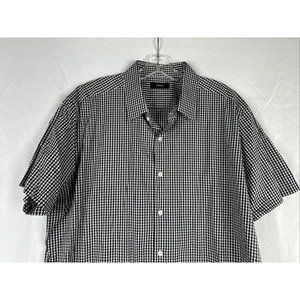 Theory Button Up Shirt Mens Size XXL Black White Plaid Short Sleeve Preppy