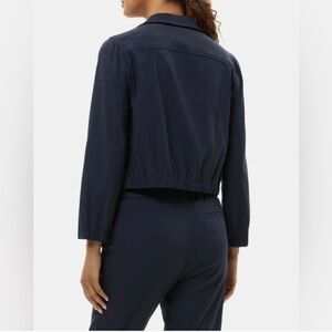Theory CL Shrunken Jacket Soft Crunch Linen Lyocell Navy Blue Open Front Small