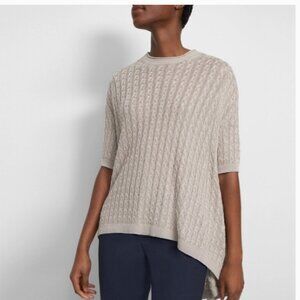 Theory Cable Knit Linen-Blend Hi-Lo Short Sleeve Sweater in Beige Medium