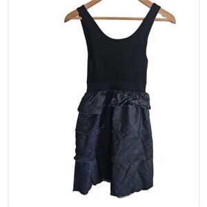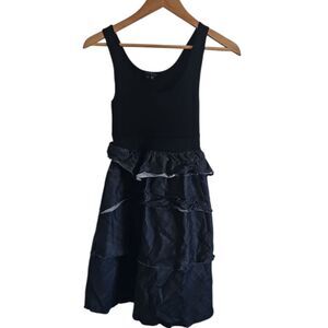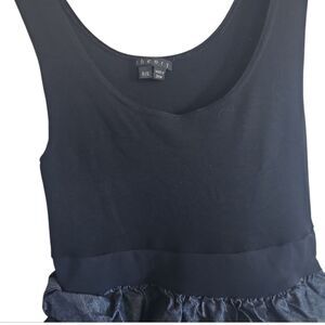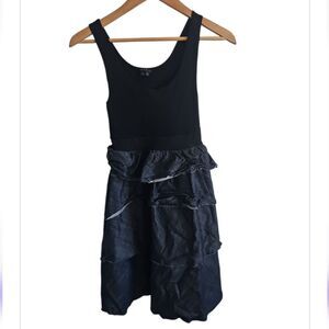 Chic Theory black sleeveless mini dress Soft, stretchy knit bodice and a statement tiered woven skirt with ruffle details