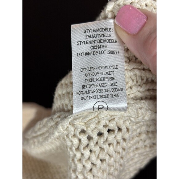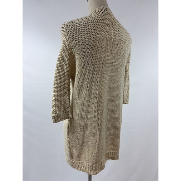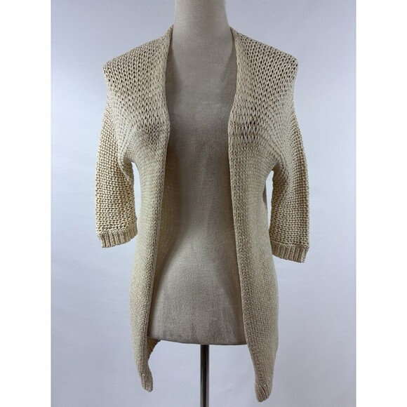 Theory Cardigan Cream Petite Cotton Linen Open Front Chunky Loose Knit