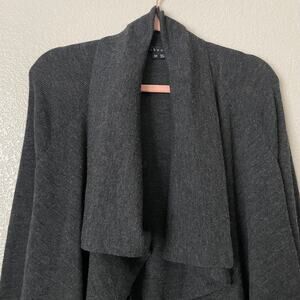 Theory Cardigan Womens Small Gray Wool Draped Open Front Ribbed Knit Minimalist