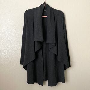 Gray Wool Draped Open Front Ribbed Knit Cardigan Theory Small