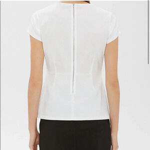 Theory Carrian Precise Peplum Stretch Cotton Pleated White Short Sleeve Blouse Size S
