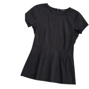 Theory Carrian Precise Pleated Peplum Blouse Back Zipper Black