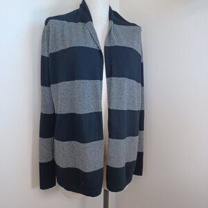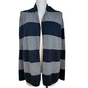 Theory Cashmere Cardigan Ashtry R Royal Black Gray Stripes Open Front Size Small