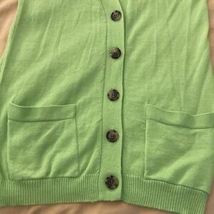 Theory Cashmere Short Sleeve Long Cardigan Sweater in Lime Green. Size Small.