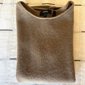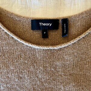 Lovely classic t-shirt cashmere sweater from luxury brand Theory. In a pretty neutral fawn, taupe colorway that works with everything.