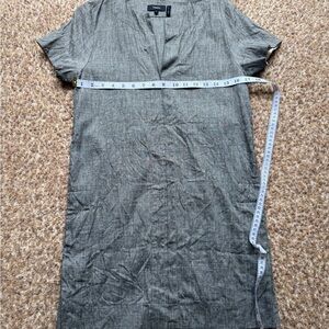 Chic asymmetrical dress by Theory. Features a sophisticated charcoal hue. Ideal for versatile styling.
