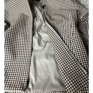 Theory Check Peplum-Back Sculpture Jacket Ivory Tan Grid Stretch Women's Size 10