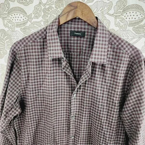 Theory Checker Button down Long sleeve Men's Dress Shirt L