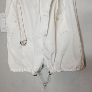 Theory Cinch Hem Button Front White Sleeveless Dress Belted Pockets Size 8