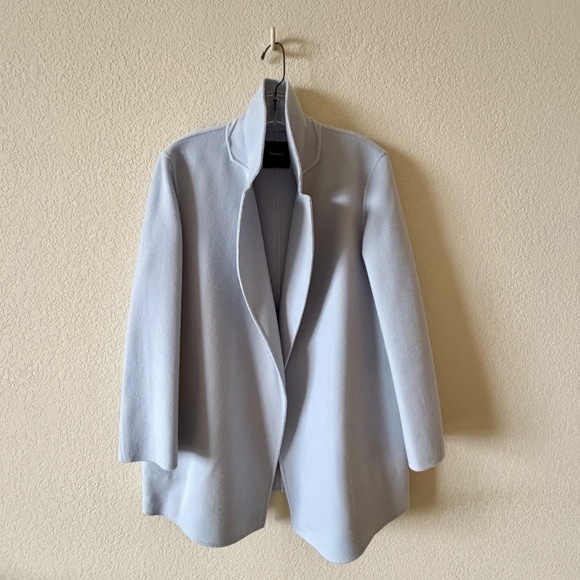 A Theory cashmere blazer with a relaxed shape and bracelet-length sleeves, the Clairene jacket features a luxurious look and feel for seasonless appeal. Crafted of double-faced wool and cashmere, Theory's sleek open-front coat showcases polished notch lapels and side on-seam pockets. This relaxed design flaunts an elegant silhouette.