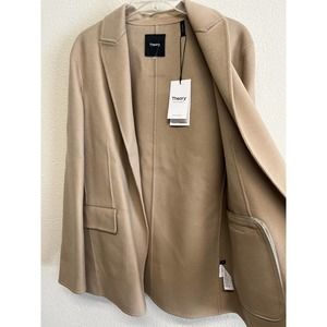 Theory Clairene Open Jacket DF Wool-Cashmere Size M Camel Palomino NEW
