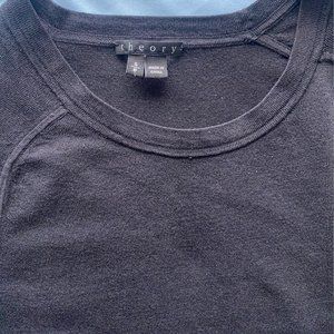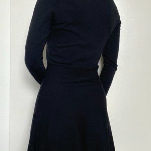 Small Theory long sleeve, black A-Line dress. 54% silk, 39% cotton, 7% polyester. There are a few loose threads around waist portion of the dress (pictured).