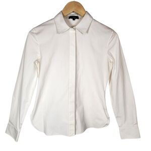 Theory Classic Fitted White Button Down Shirt Cotton Stretch Luxury Designer 4