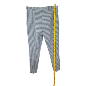 Elevate your wardrobe with these Theory New With Tags (NWT) tailored trousers in a classic blue windowpane check. These sleek pants offer a flattering slim fit with a slightly cropped ankle length and a clean waistband for a polished silhouette. Crafted with Theory’s signature precision and quality, these pants are ideal for work, events, or smart casual styling.