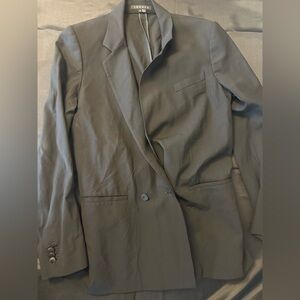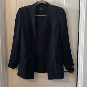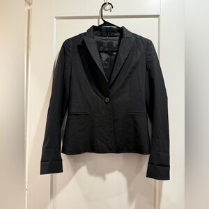 Theory two button black wool gabardine jacket with peak lapels. Size 8. Gently worn in very good condition.
