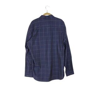 Theory Mens Size XL Navy Blue Mouline Grid Clean Placket Shirt Button Up